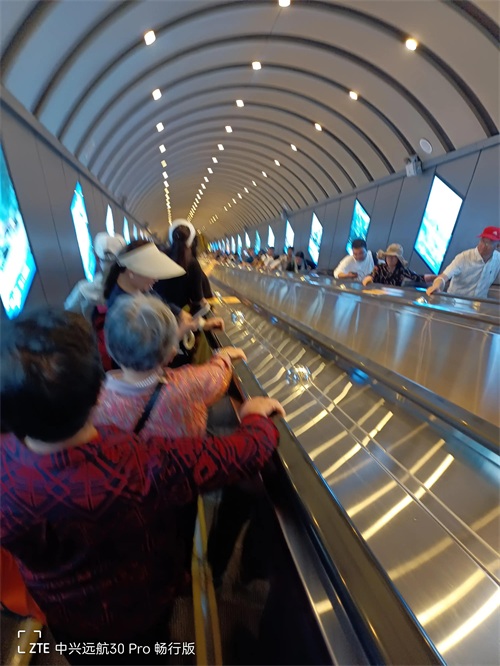 下山,乘穿山电梯(扶梯)共12节,全长1277米,(高低落差1200多米)