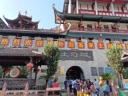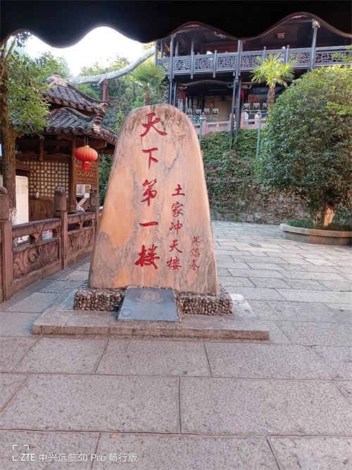 在奔赴天门山国家森林公园的途中第一景点游览观光《土司城》,它是"齐政修教,因俗而制"的土司文化,展现土司王城"城内三千家,城外八百村″的盛世繁华,它集儒、释、道、巫四教为一体,融天文 、地理 、财学 、风水为一身,原国务院总理朱镕基曾经親笔为土司城题字:天下第一楼