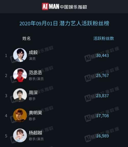 00后最爱的新生代艺人:黄明昊掉出前三,范丞丞也仅排第二