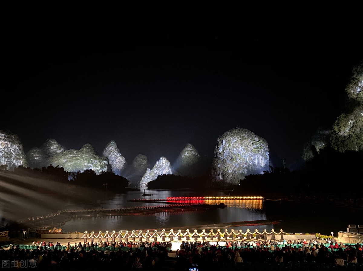 20:00-21:00 乘车返回桂林市区,或自费观看著名导演张艺谋执导、编排的,大型实景山水演出 ---《印象刘三姐》(参考价格B2贵宾席268元/人)。
