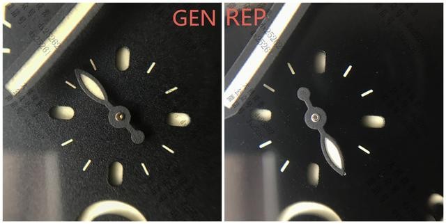 放大细节:提醒大家一下,GEN是正品,真正的顶级货是经的起放大来比对的,通过放大可以看出还是有区别的,VS的字体较正品的话还是要细些,十二点的位置是看有些色差!但是区别不大图片上有些光线原因。