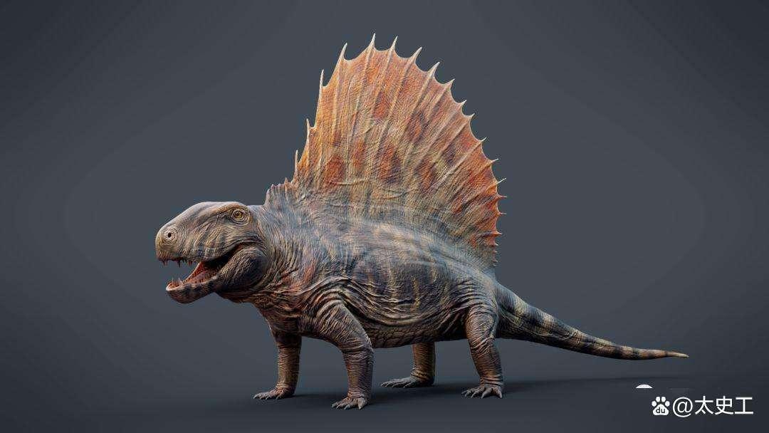 二叠纪,爬行动物终于发展起来了,陆地霸主叫做“异齿龙”——长得像个科莫多龙,背上支一片大扇贝,那叫做“背帆”。背帆的作用,可能是更快散热,可能是像公鸡打架先把毛支棱起来吓唬对手,也有可能像孔雀开屏一样为了求偶。重点是异齿龙不是恐龙,是哺乳动物的进化上的祖先。异齿龙的类似物种进化为“丽齿兽”,书上说是像狼一样的东西,可是我看图片,除了腿,还是个大蜥蜴。