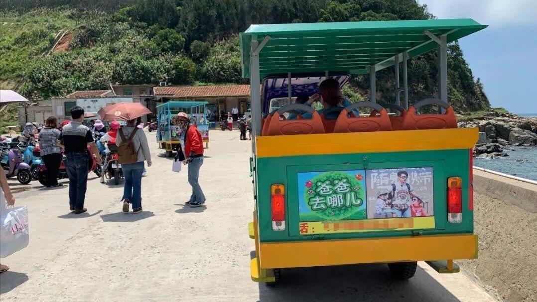 上岛后就有三轮车和岛内公交车,三轮车可以和师傅讲好价格,就可以带你去岛上你想去的地方,基本上是5元/人起,而且中途可以随叫随停,很方便,下车后可以留师傅的电话,等你回程时一个电话,师傅就会回来接你去下一站了。公交车是固定线路,除非你很明确去往的方向有经停,不然全程一元的车票还是很划算的。