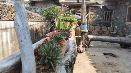 当地的民宿多以大海为主题,随处可见大小不一的漂流木,有心的人常在海边捡到,用来装饰庭院,再辅以一些绿植,这样一个温馨的小家就多了几许生机。