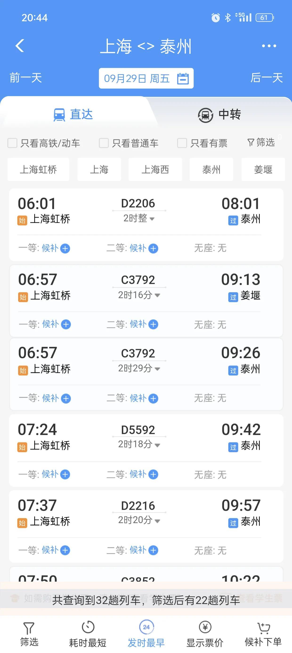 泰州才是班次最少的,上海到扬州的时间甚至比上海到泰州的时间还短。