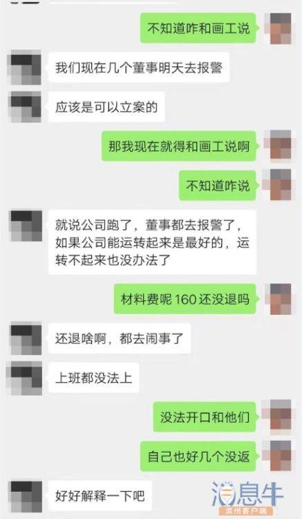 陈女士介绍,在等待返工费的那段时间,她一直关注群里的信息,“11月10日,群里的工作人员,也就是我们的代理,说不能结算工费了,因为公司在德州被查封,负责人被抓了。”陈女士说,得知不能结算工费,群里的人都着急了起来,但再去联系那位“代理”时,或者已经微信被拉黑或者信息不予回复。