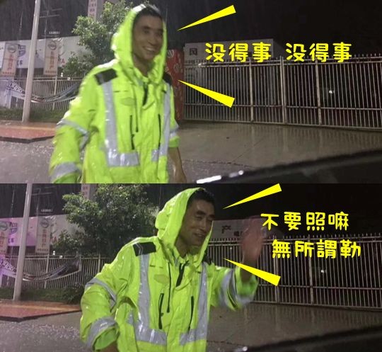 狂风骤雨,大雨倾盆,路上的交警是一栋栋高耸入云的大树,任凭那风吹雨打,任凭洪水肆虐他们的身体,坚韧不拔的身躯依旧挺立,暴雨中的那一抹“荧光黄”,那脸上的微笑,定义了这座城市的温度......