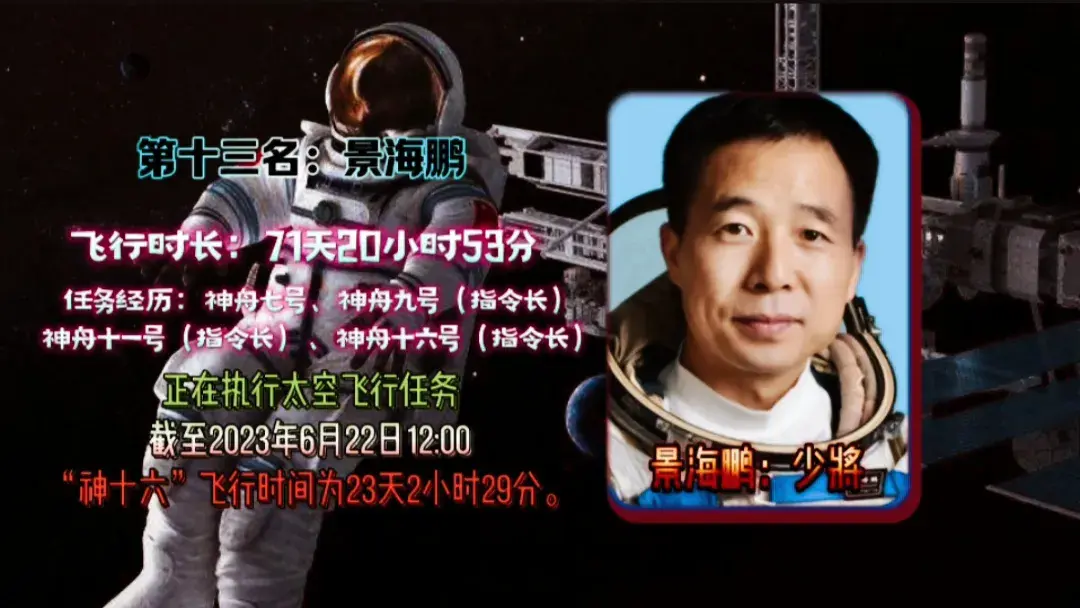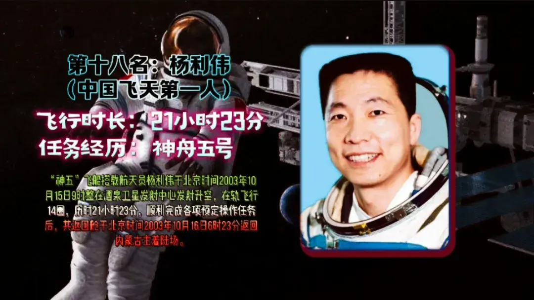 2003年10月15日9时整,神舟五号载人飞船在酒泉卫星发射中心发射升空,历时21小时成功绕地球飞行14圈后返回地面,自此掀开了中国航天事业深度探索宇宙奥秘的新篇章!杨利伟成为中国飞天第一人,刘洋成为中国女性飞天第一人,翟志刚成为太空漫步第一人,景海鹏成为四次飞天第一人,陈冬成为首位飞天时长超过200小时的第一人,王亚平成为中国女性太空漫步第一人。为了记住他们的名字,小编整理了两组图片,系统介绍一下18位飞天英雄的辉煌时刻,非常值得点赞+收藏!并以此向中国的航天事业致敬!向这些航天英雄、时代楷模、国家栋梁和励志榜样们致敬!