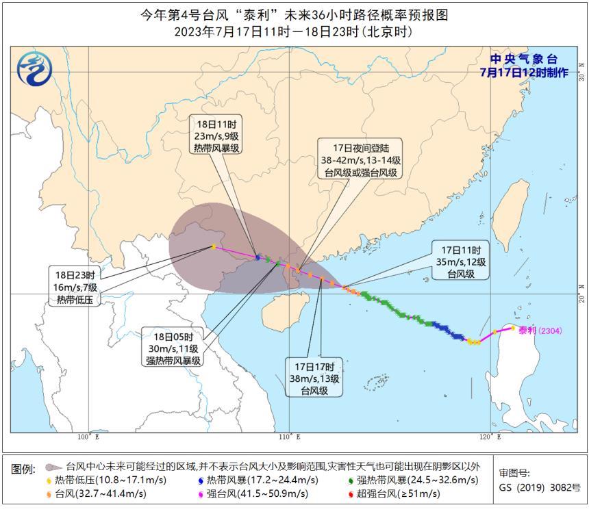 17日夜间将在阳江到徐闻沿海登陆