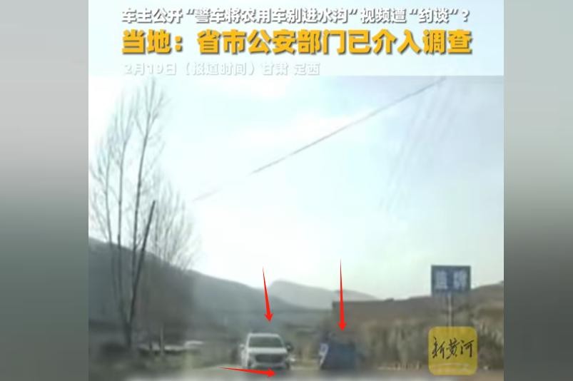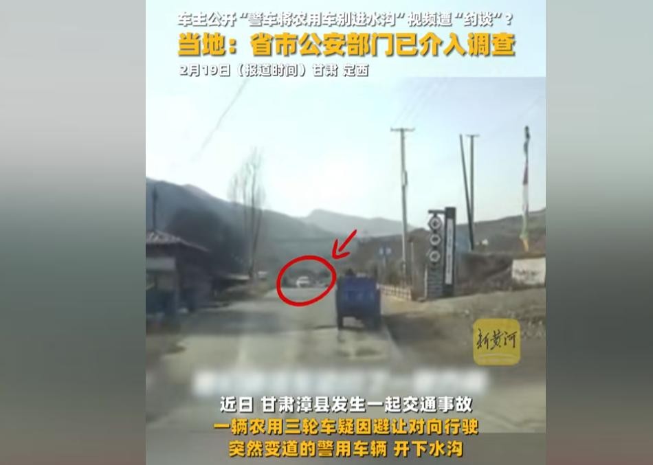 2 月 13 号,在甘肃定西漳县的一条国道上,漆先生开车时,行车记录仪拍下了让人火大的一幕。一辆农用三轮车正好好地在路上跑着呢,对面开来的警车冷不丁地打方向盘,直接把三轮车别进了 70 厘米深的路沟里。