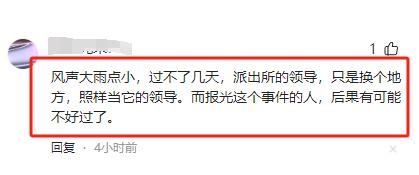 风声大雨点小,过不了几天,派出所的领导,只是换个地方,照样当它的领导。而曝光这个事件的人,后果有可能不好过了