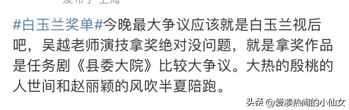 白玉兰获奖名单新鲜出炉,部分奖项爆冷惹争议!