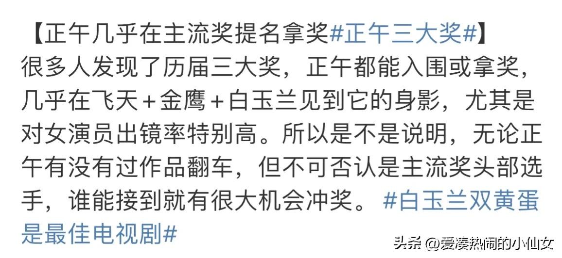 也有网友发现,这次的所有的获奖名单里除了新丽的《人世间》,得奖的《开端》《县委大院》都是正午的!