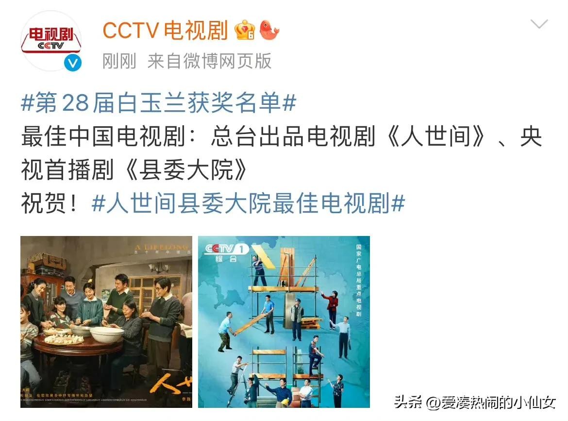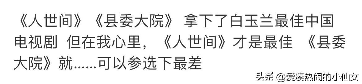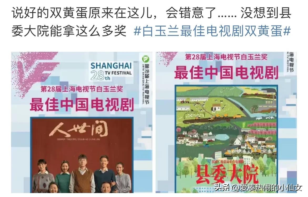 而很快网友又发现,另一个没有想到的奖,要数最佳中国电视剧:《人世间》和《县委大院!