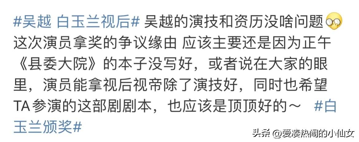以至于前方现场同事第一时间传来,最佳女主是吴越的时候,我都愣住了!