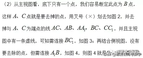 我们知道三视图的很多题型是来源于正(长)方体,因此只有在正(长)方体找到顶点就可以还原三视图,那么顶点的寻找是不是只能凭空间想象力呢?有无可以操作的方法?当然有,下面依然以例1为例。