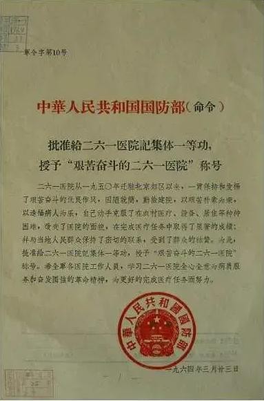 六十年代国防部授予荣誉称号的单位(八):艰苦奋斗的二六一医院
