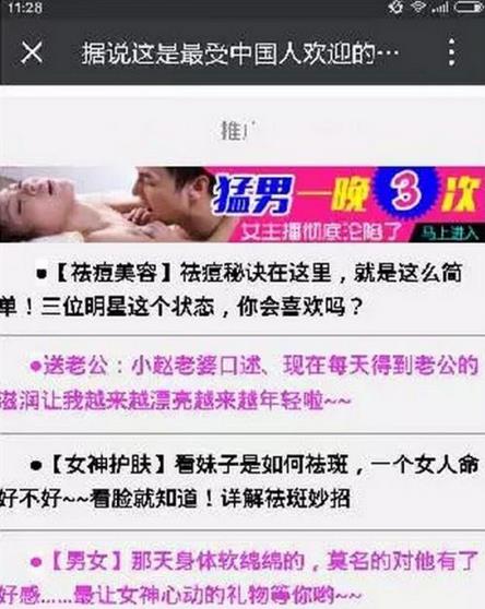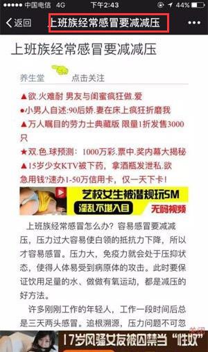 该转发平台内部人员透露:三四线城市及刚使用微信的中老年人喜欢转发一些骇人听闻事件及养生鸡汤等文章,我们正是利用这一点,在文章当中植入虚假广告,以此牟利。