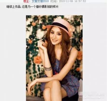 发现了一篇她成名前在天涯发过的帖子,2010年开的贴,id是“女那女那2010”看照片她对阿宝色也是情有独钟啊!