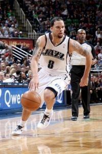 而有趣的是,在来到犹他爵士之前,德隆虽然天赋异禀,但却是一个传球第一的纯控卫。而爵士的老帅杰里·斯隆看到了他身上强大的得分潜力,要求德隆在场上要充分发挥自己的得分才能。而德隆在经过了两个赛季的适应之后,成功达到了老帅的要求,成为了球队大脑的同时,也成为了首席外线得分手,连续四个赛季可以贡献18+9以上的数据。其中有一个赛季得分达到20分以上,3个赛季的助攻过10。虽然数据比起同年进入联盟的保罗略为逊色,但是德隆在两人的直接对话中,却屡屡能压制保罗,而且爵士队在这段时间也是季后赛常客,更打进过保罗一辈子也没能染指的西部决赛。